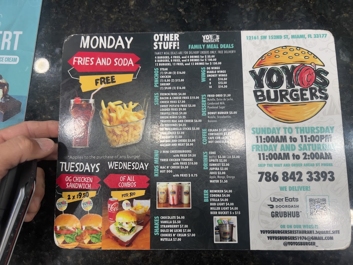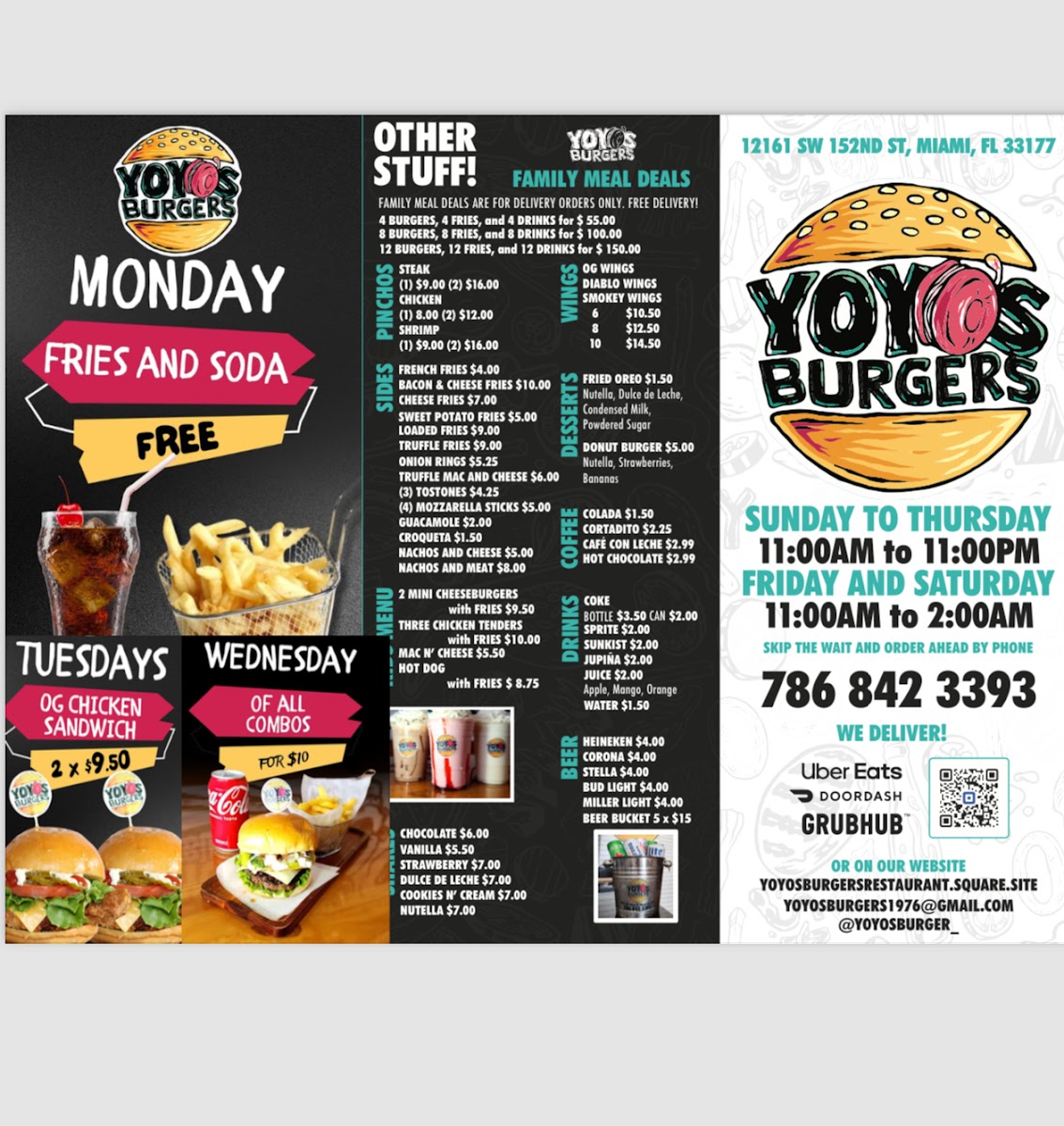 Nestled in the heart of Miami's Metro Zoo Area, Yoyo's Burgers is a culinary gem born from a successful food truck venture. The menu captivates with a stunning array of house-crafted burgers, including standout creations like the Daddy Burger and the Croquetta Loca Burger, all perfectly paired with crispy, golden fries.